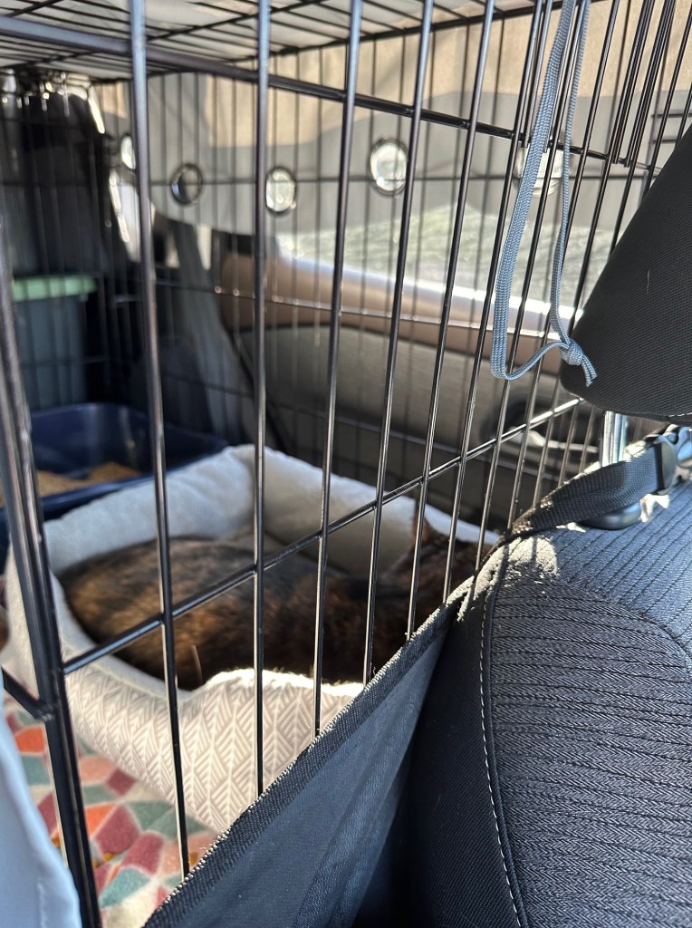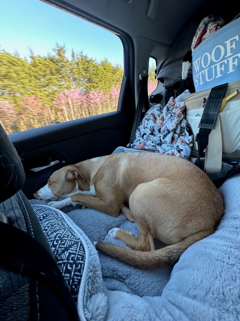 Cassie and Ella did great in the car! I was actually pretty shocked at how well Ella did during the drive. She only woke Jake up once because she wanted food but that’s expected. Cassie took a little longer to settle in as she didn’t have as much room as she normally does in the car but eventually, she curled right up.