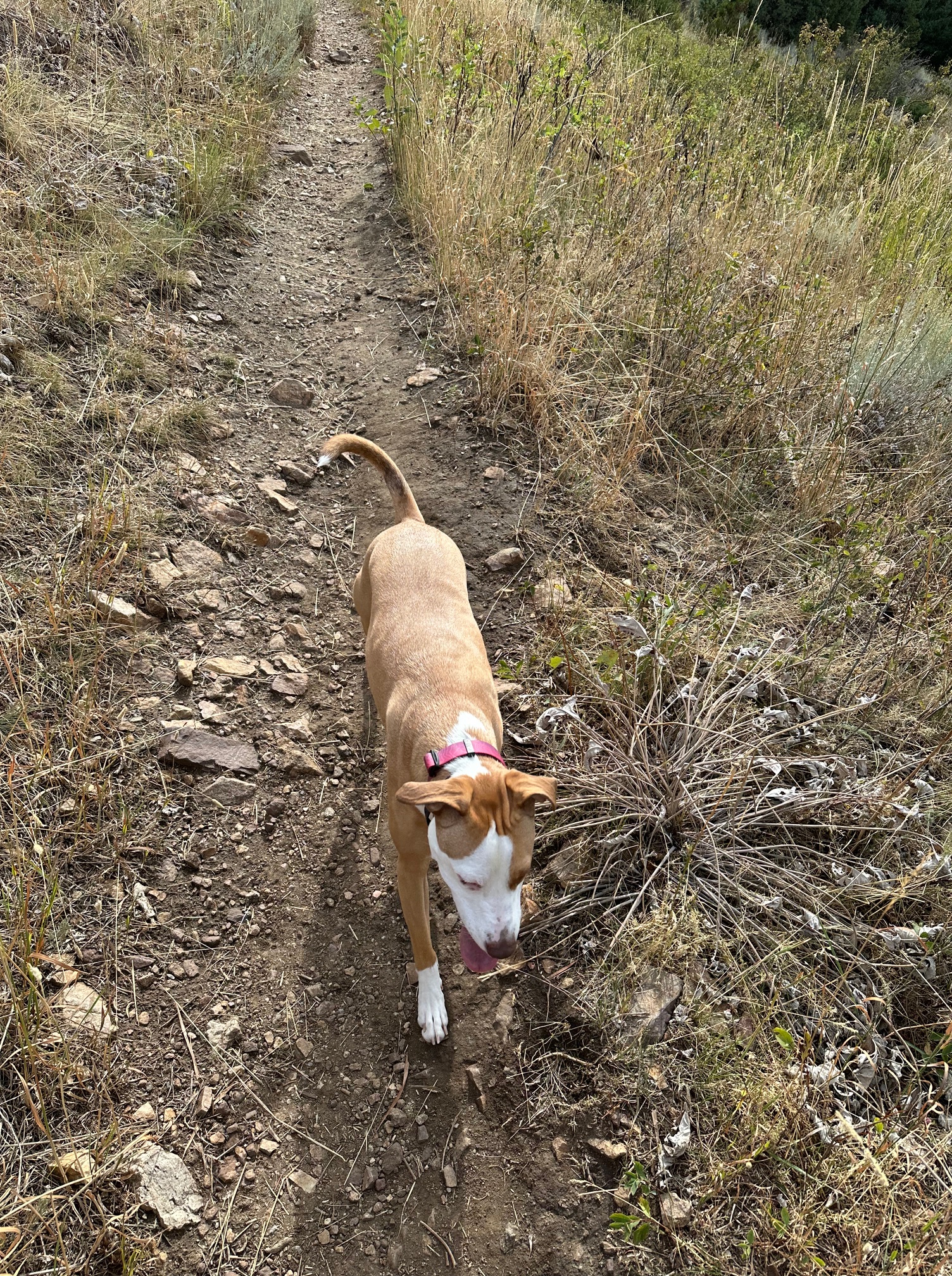 Both times that I took a tumble, Cassie came running back to me and sat next to me until I was able to get up. I was so impressed with her because a year ago she would have bolted to find some dog friends to play with.
