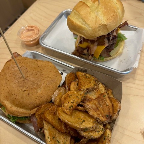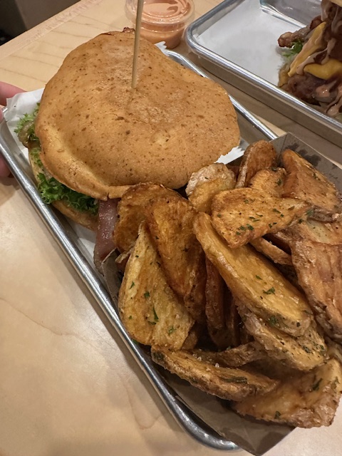 In search of a quick meal before the comedy show, we discovered Seven Brothers Burgers, which also offers gluten-free options. The burgers were fantastic, and they served the best gluten-free buns I’ve ever had. Often, I’m let down by places claiming to have gluten-free buns that end up being crumbly store-bought Udi’s buns. However, their buns were outstanding; you couldn’t even tell they were gluten-free. While those not on a gluten-free diet might notice a difference, I found them quite impressive.