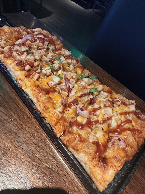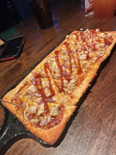 One side of the venue was dedicated to games, while the other housed the restaurant, complete with numerous TVs to view various games. I’m not sure if I’ve dined at Dave and Buster’s before, but I ordered a BBQ chicken flatbread pizza on a cauliflower crust, and it was outstanding! I was thoroughly impressed. Jake also chose the BBQ chicken pizza, but on a traditional crust.