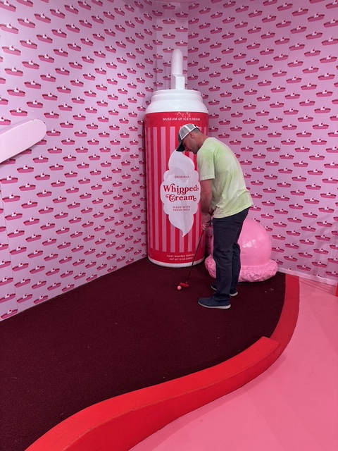 Each museum location features its own unique flavor, and in Chicago… it was hot dog. Yes, you read that right—hot dog flavored ice cream. It sounded a little questionable, and unfortunately, it lived up to expectations—it really did taste like a hot dog. They topped it off with relish and mustard to complete the theme. I took one bite and tossed it immediately. Jake went a step further and got it served in a pastry bun to really mimic the full hot dog experience. He threw it out just as fast!